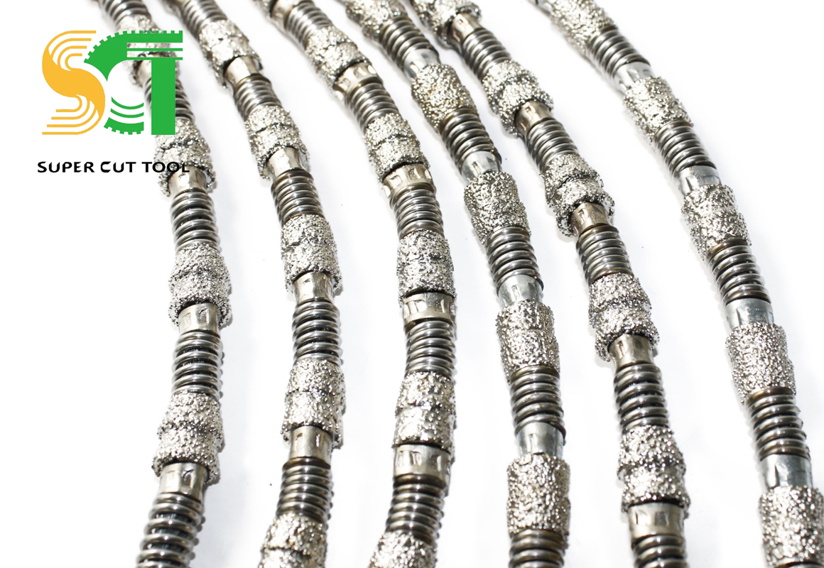 1: The diamond of the brazed wire saw is fixed on the bead steel base by brazing, and the surface is convex. the diamond open is very easy and uneven, so it is better to grind the stone during the cutting process and save the opening process.2: The uneven surface of the brazed wire saw forms a natural waterway, which is of great help to chip removal and cooling. The benefits of doing so also indirectly increase the wire saw life.