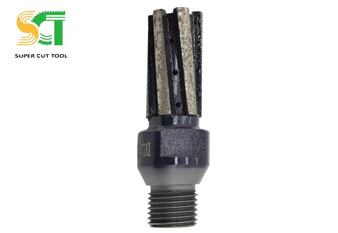 Segmented Finger Bits are available in a soft bond for hard to medium granite. Always dependable, these high-performance 1/2 gas threaded bits are versatile and best used wet. The bottom segment on the end of the bit gives the CNC operator the option of drilling into the slab like a core bit.The Finger Bit Soft Bond is ideal for hard stones like granite. Hard stone requires the finger bit bond to be softer. Softer stone are milled best with a finger bit with hard bond.